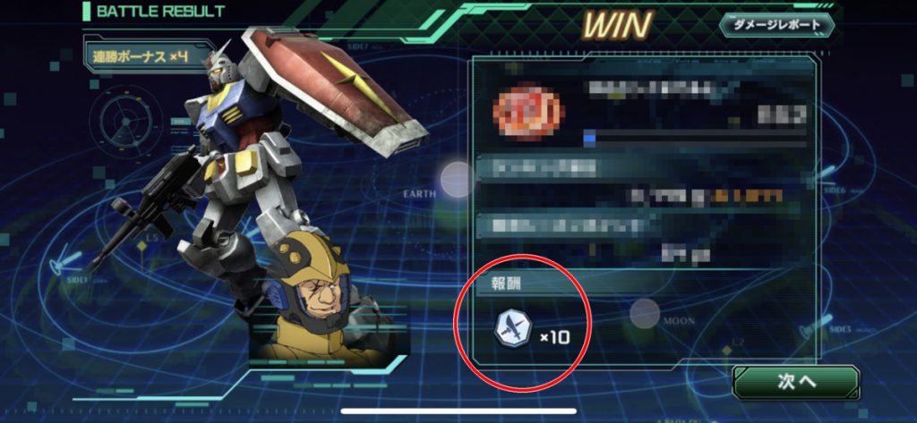 確認できた限りでは勝利時に10枚、敗北時に3枚となるようです。