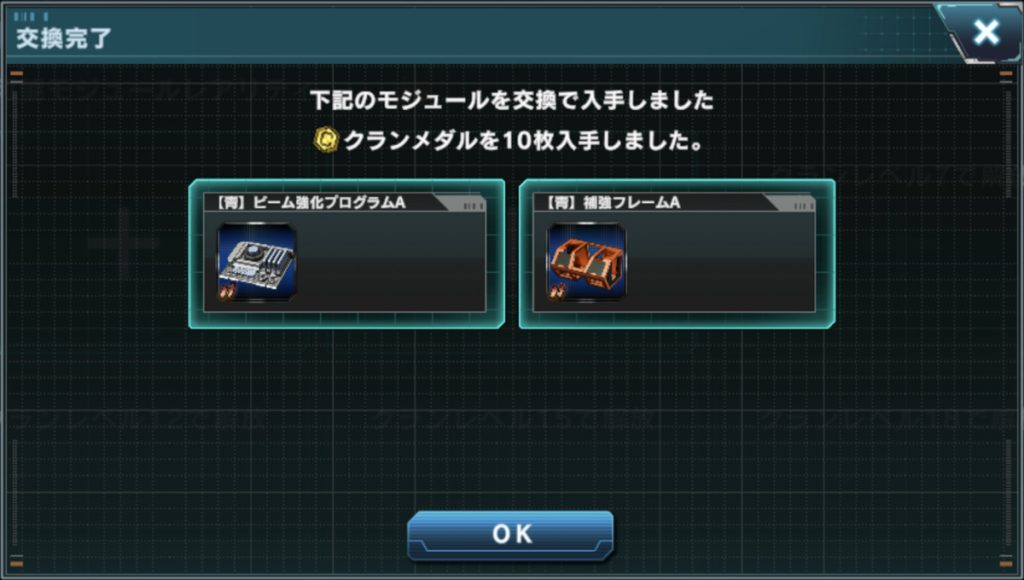 クランメダルはクランでモジュール交換を行った際に入手できます。
