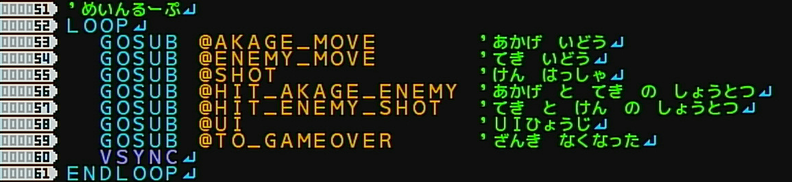 初心者講座のメインループの内容をサブルーチン化するとこのような感じになります。